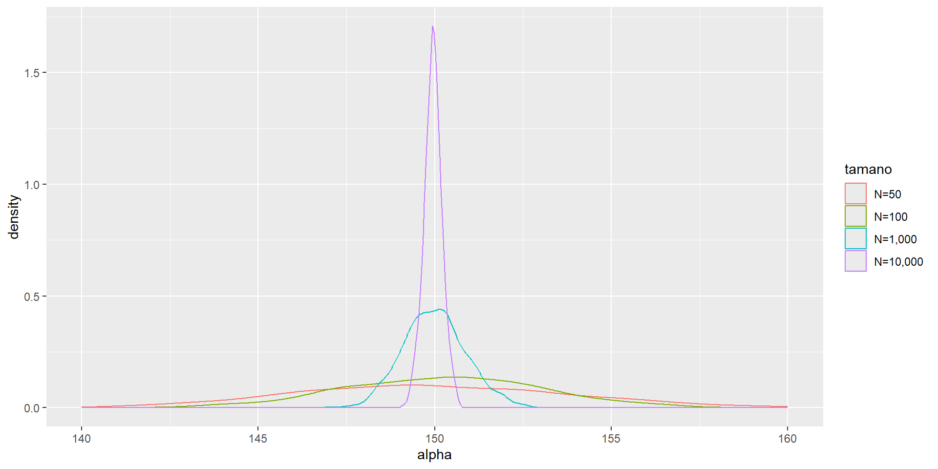 #Quito la primera fila, que son NAscoleccion_estimadores_mco <- coleccion_estimadores_mco[-1,]coleccion_estimadores_mco <-data.frame(coleccion_estimadores_mco) %>%rename(alpha=X1,beta=X2,tamano=X3)#Aquí veremos la funcionalidad de los factorescoleccion_estimadores_mco <- coleccion_estimadores_mco %>%mutate(tamano=factor(tamano,levels =c(50, 100, 1000, 10000),labels =c("N=50", "N=100", "N=1,000", "N=10,000")))
